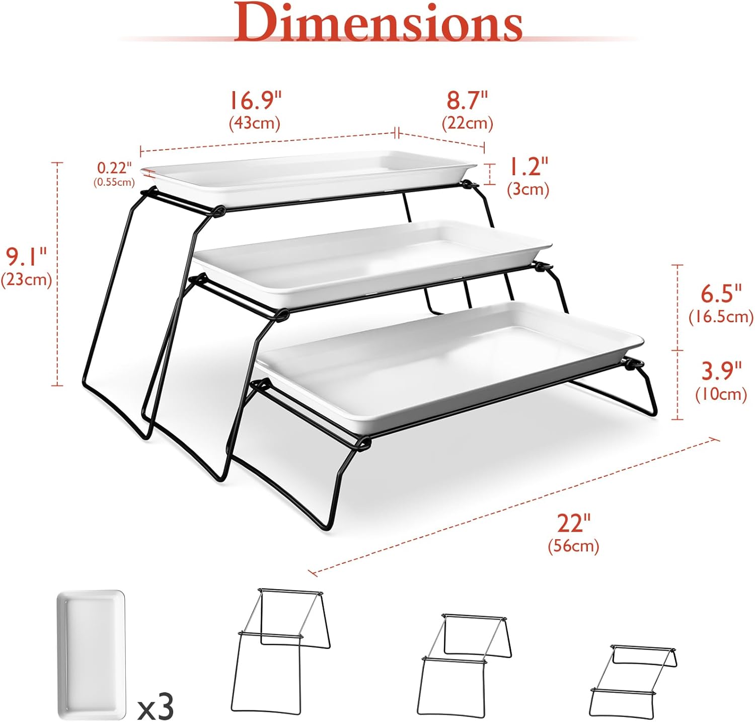 Extra Large 3-Tier Melamine Serving Tray Set and Cupcake Stand for Party Events, 17" Platters with Tiered Stand, Holds 63 Cupcakes, Food, Dessert, and Fruit – Black