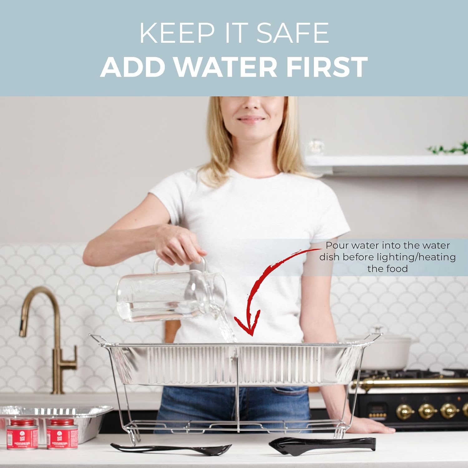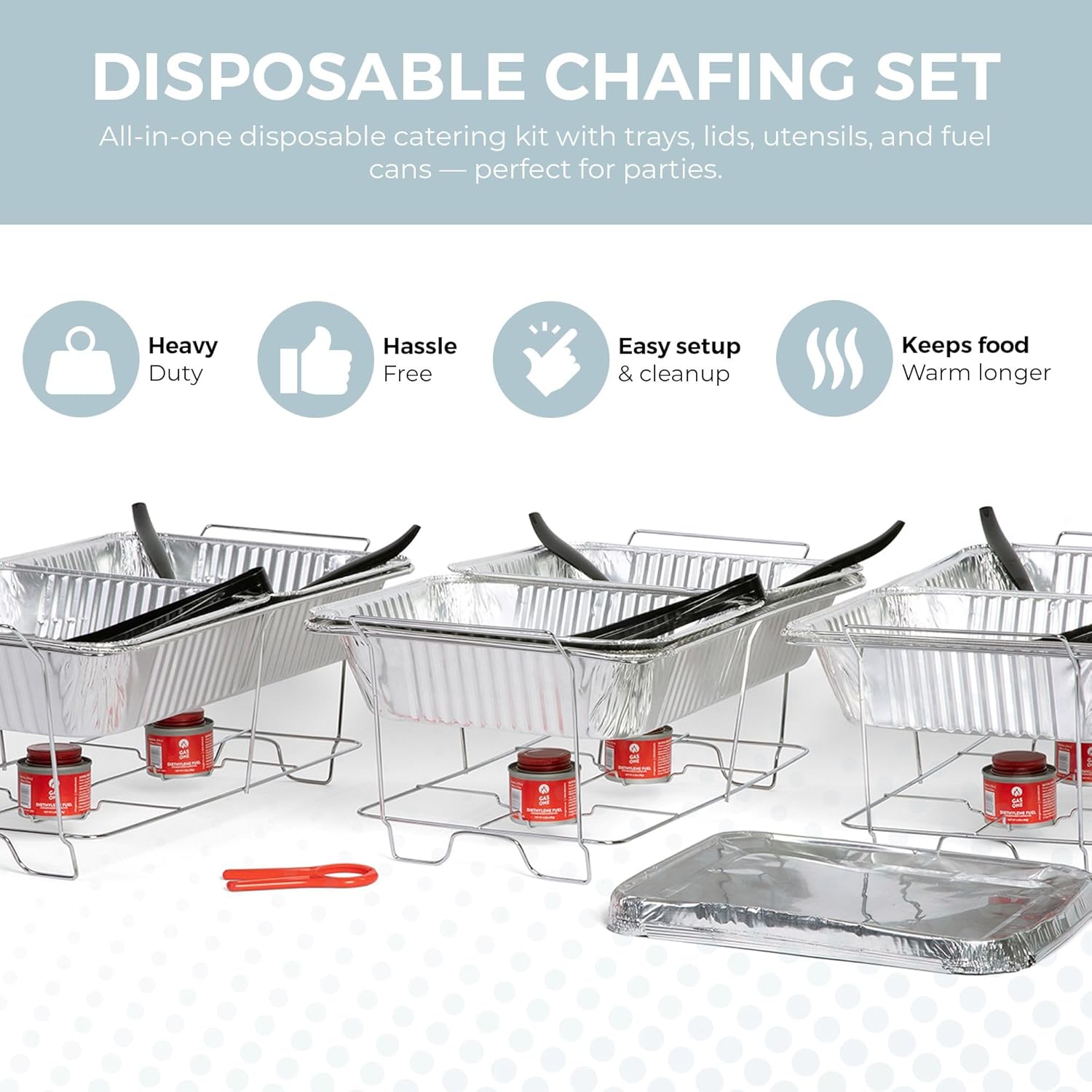 Large Full Size 33-Pcs Disposable Chaffing Buffet with-Covers, Utensils, Fuel Cans – Premium Chafing Dish Set for Events, Parties, Catering