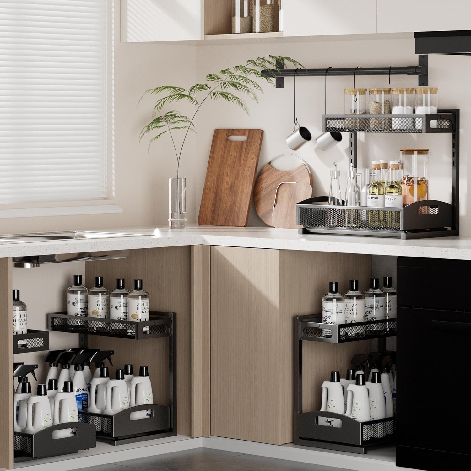 Under Sink Organizer,2 Pack Height Adjustable Under Sink Organizers and Storage, 2 Tier Under Sink Storage for Kitchen Bathroom Cabinet